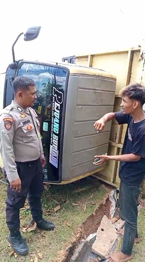 “Saya coba hindari Avanza hitam, tapi tidak sempat rem, jadi terbalik,” kata Berkat. Mobil box kosong, baru antar sembako ke salah satu toko di daerah tersebut.
