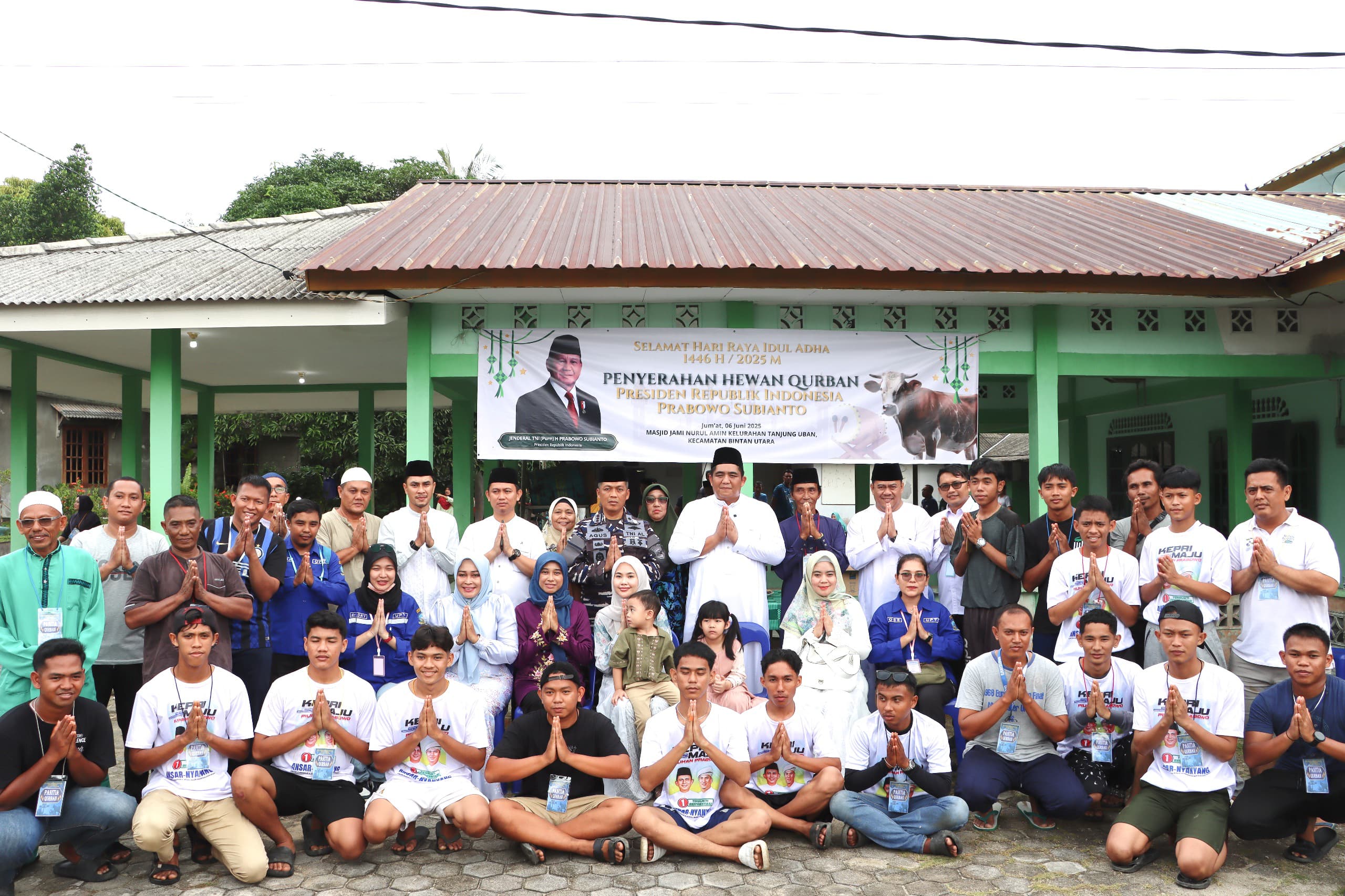 www.ranaipos.com – Bintan : Suasana penuh haru dan antusiasme menyelimuti Masjid Jama’ Nurul Amin di Kampung Sekera, Tanjung Uban Utara, Jumat (6/6), saat Bupati Bintan Roby Kurniawan menyerahkan secara langsung sapi kurban dari Presiden Republik Indonesia, Prabowo Subianto.