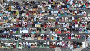 “Idul Fitri bukan tentang baju baru, perhiasan, atau kemewahan. Esensinya adalah kembali kepada fitrah, menjadi pribadi yang lebih baik sebagai khalifah di muka bumi, serta meraih kemenangan hakiki,” tegasnya di hadapan jamaah.