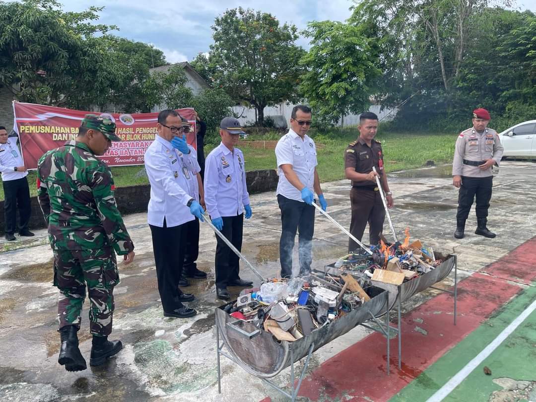 Barang bukti yang dimusnahkan mencakup berbagai benda hasil sitaan yang berpotensi mengancam keamanan, seperti alat komunikasi, senjata tajam, serta barang-barang yang dilarang di dalam lingkungan Lapas. Prosesi pemusnahan dilakukan dengan cara dibakar dan dipotong, dan disaksikan langsung oleh aparat yang hadir sebagai bentuk transparansi.