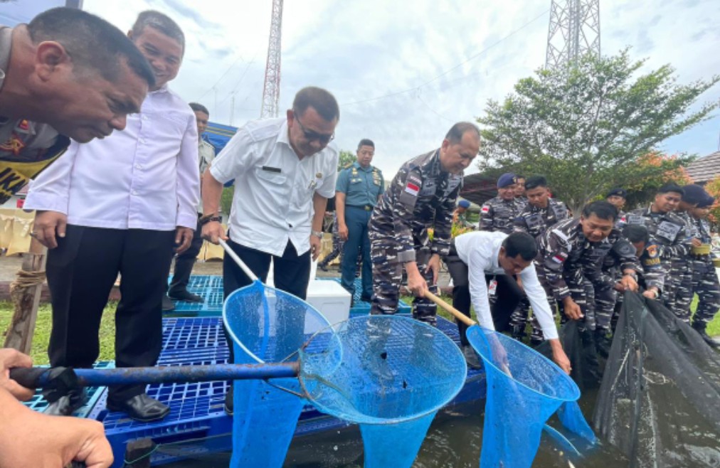 Sementara itu dilahan ketahanan pangan Lanal Ranai, Komandan Lanal Ranai bersama Forkopimda Kabupaten Natuna melaksanakan panen Ikan Nila dan Panen Sayur Sawi Pakcoy serta Sawi Keriting secara bersama-sama.