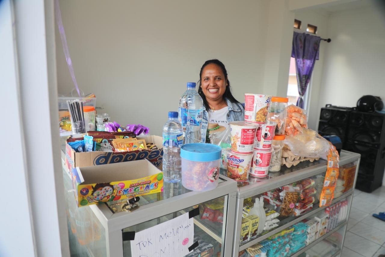 Setelah memiliki satu unit rumah berikut sertipikatnya, di halaman rumah Aveline berdiri sebuah kios kecil. Kios itu jadi sumber penghasilan barunya setelah bertahun-tahun hidup tanpa kepastian. Tak hanya bisa tinggal dengan lebih aman dan nyaman, secara ekonomi kini Aveline bisa hidup lebih mandiri.