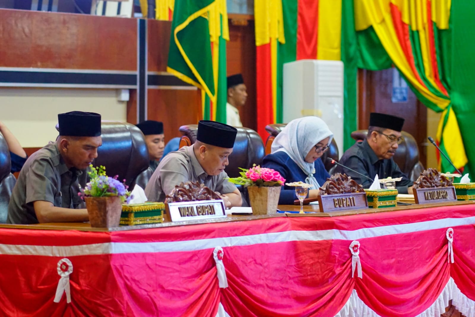 Rapat Paripurna ini dipimpin langsung oleh Ketua DPRD Kabupaten Lingga, Maya Sari, S.Sos., M.IP., didampingi Wakil Ketua I DPRD, Drs. H. Said Agusmarli, serta dihadiri oleh Wakil Bupati Lingga, Novrizal, serta para anggota DPRD dan undangan yang hadir.