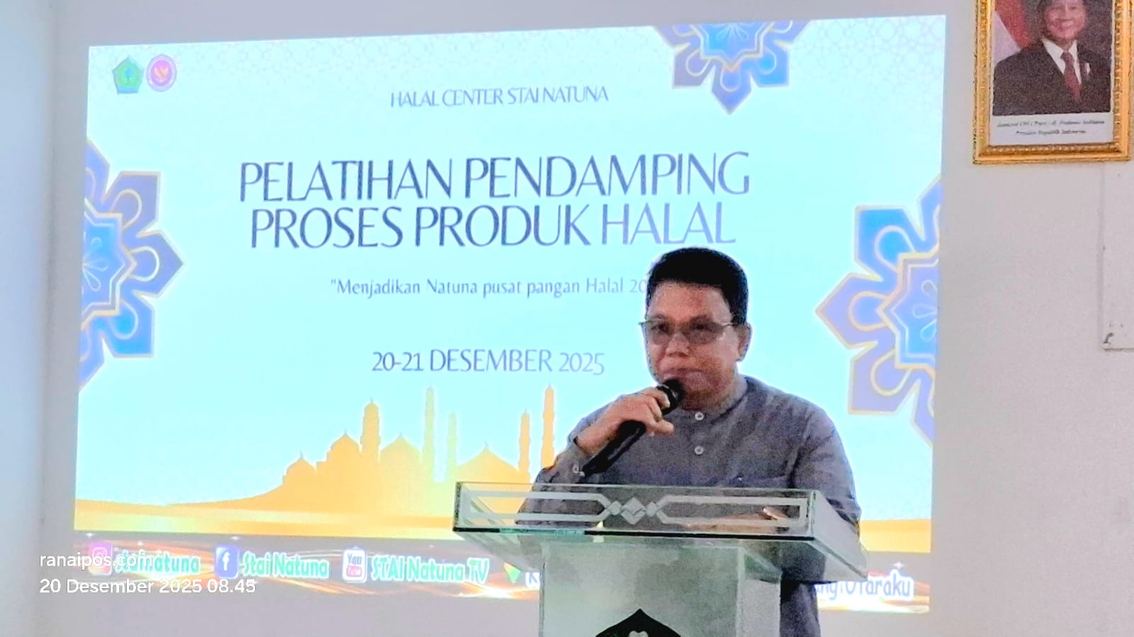 Natuna _ ranaipos.com : Halal Center STAI Natuna menggelar Pelatihan Pendamping Proses Produk Halal (P3H) dengan tema “Menjadikan Natuna Pusat Pangan Halal 2026”. Kegiatan ini berlangsung selama dua hari, Sabtu hingga Minggu, 20–21 Desember 2025, bertempat di Aula Gedung STAI Natuna, Kompleks Masjid Agung Natuna.