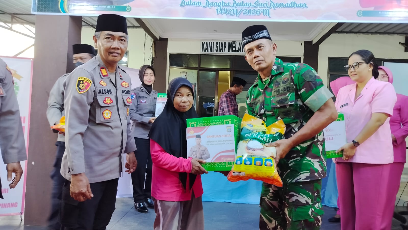 Dalam safari Ramadhan, Kapolresta Tanjungpinang dan rombongan menyerahkan bantuan sembako kepada penerima manfaat.