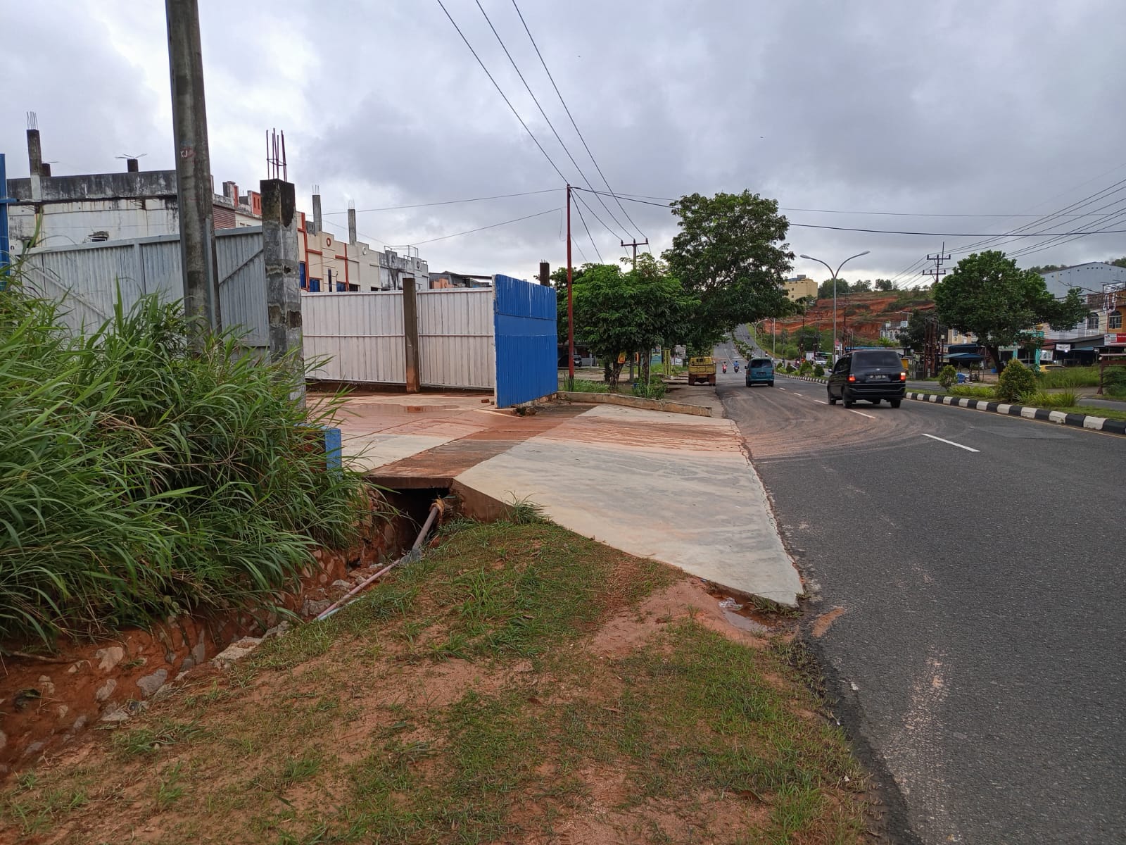 Akibat ditutupnya akses utama tersebut, pihak pabrik kemudian membangun jalur alternatif sebagai akses keluar masuk kendaraan. Namun, pembangunan jalur baru itu diduga menutup parit drainase di bibir jalan. Dampaknya, saat hujan lebat, aliran air tidak tertampung dan meluap ke badan jalan, membawa lumpur merah yang menyulitkan pengendara roda dua maupun roda empat untuk melintas.