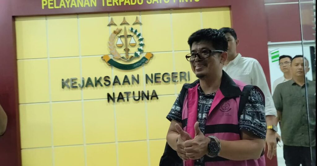 www.ranaipos.com _ Natuna : Setelah lebih kurang 10 (sepuluh) jam memasuki gedung korps adhyaksa, akhirnya sekitar pukul 21:49 Wib, jum’at (07/06/2024) malam, Aripin mantan sekretaris Dewan Pengawas Perusda Natuna keluar dari gedung Kejaksaan Negeri Natuna dengan menggunakan rompi tahanan Kejaksaan Negeri Natuna.