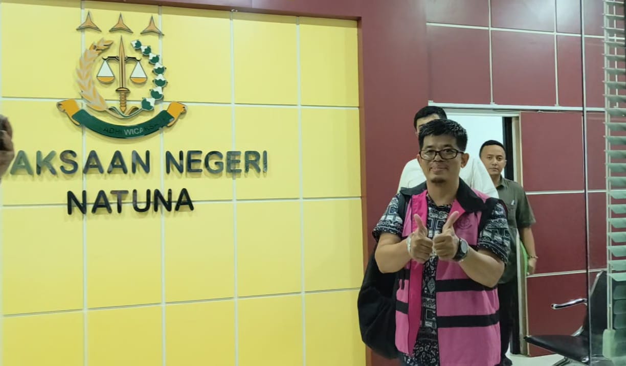 www.ranaipos.com _ Natuna : Setelah lebih kurang 10 (sepuluh) jam memasuki gedung korps adhyaksa, akhirnya sekitar pukul 21:49 Wib, jum’at (07/06/2024) malam, Aripin mantan sekretaris Dewan Pengawas Perusda Natuna keluar dari gedung Kejaksaan Negeri Natuna dengan menggunakan rompi tahanan Kejaksaan Negeri Natuna.