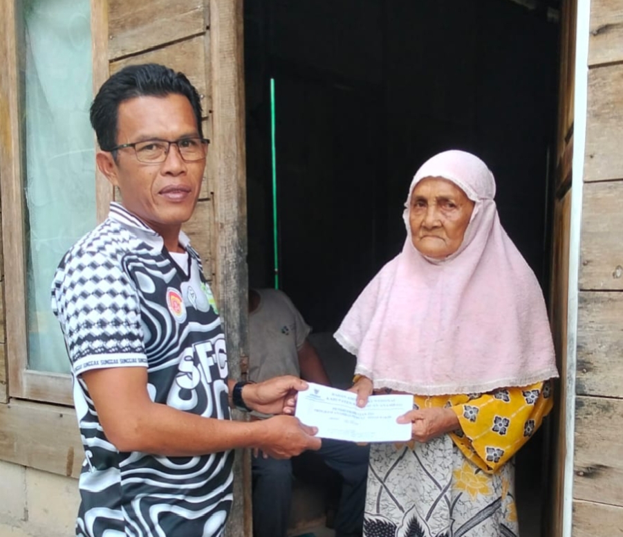Kades Sunggak Nurizal Damri Saat Serahkan Bantuan uang Tunai dari Baznas kepala warga penerima