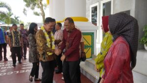 Penyambutan diawali dengan prosesi Tepuk Tepung Tawar, sebagai simbol permohonan doa restu untuk keselamatan dan kelancaran dalam mengemban amanah baru. Tarian persembahan dan silat Melayu turut ditampilkan sebagai bentuk penghormatan adat bagi tamu kehormatan.