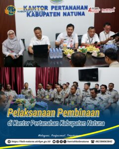 Natuna _ Kepala Kantor Wilayah Badan Pertanahan Nasional Provinsi Kepulauan Riau, Bapak Nurus Sholichin, A.Ptnh., M.M. melaksanakan kegiatan pembinaan untuk seluruh pegawai di Kantor Pertanahan Kabupaten Natuna pada hari Senin (28/04/2025) lalu.