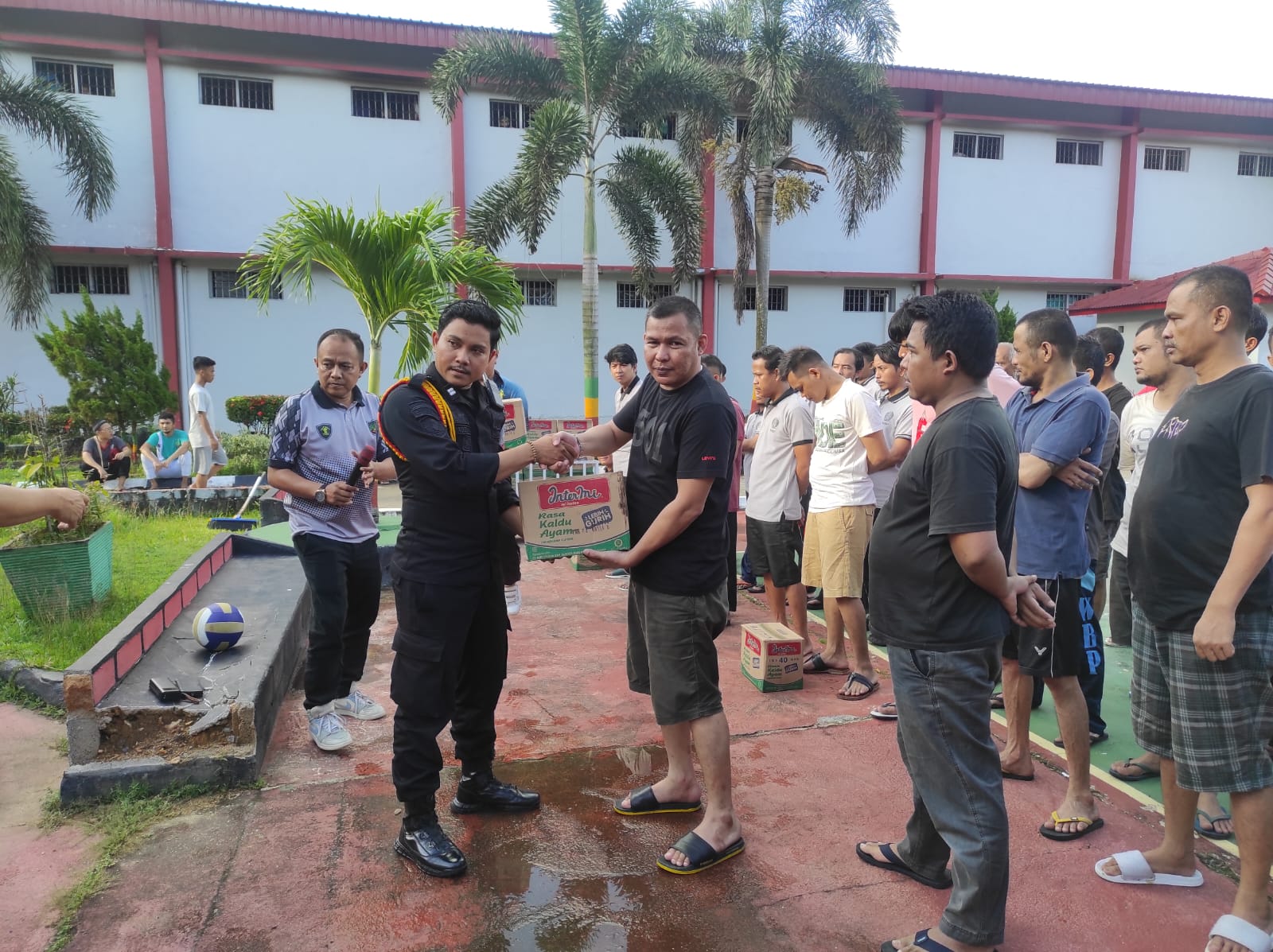 www.ranaipos.com – Bintan : Kepala Lapas Narkotika Tanjungpinang, Bejo, menyelenggarakan acara pembagian santunan makanan bagi seluruh Warga Binaan Pemasyarakatan (WBP) pada Jumat sore. Acara yang diadakan di halaman lapas ini dihadiri oleh para petugas lapas dan seluruh WBP, sebagai bentuk kepedulian terhadap kondisi mereka, Jumat (11/10/2024)