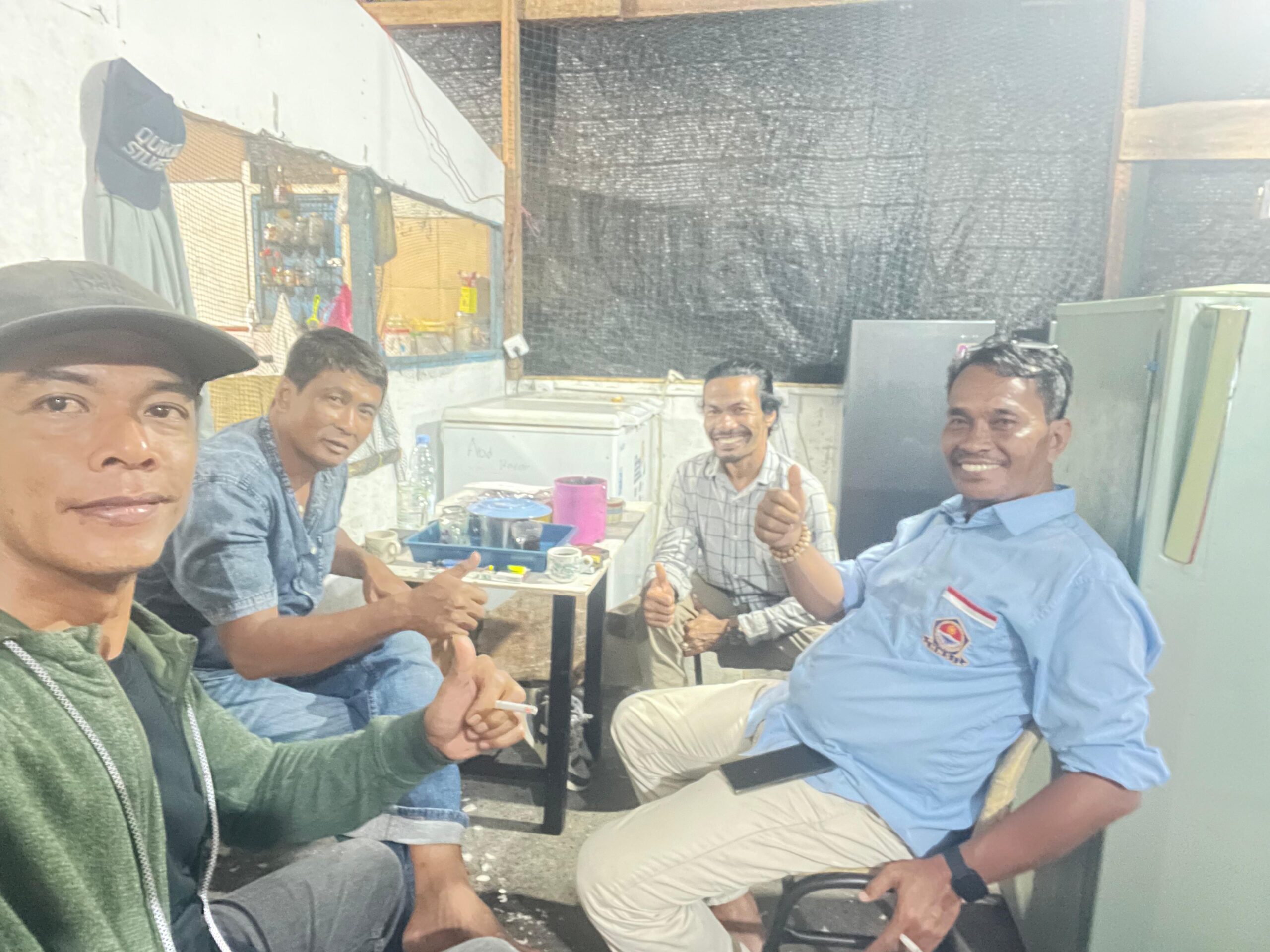 Penasihat DPC HNSI, Abdul Razak Serta Ketua HNSI Agustar dan Bidang Hukum Fitrahadi SH., Saat Duduk Membahas Persoalan Kapal Penampung Ikan yang Bersandar di Pelabuhan Antang, Senin (20/4).