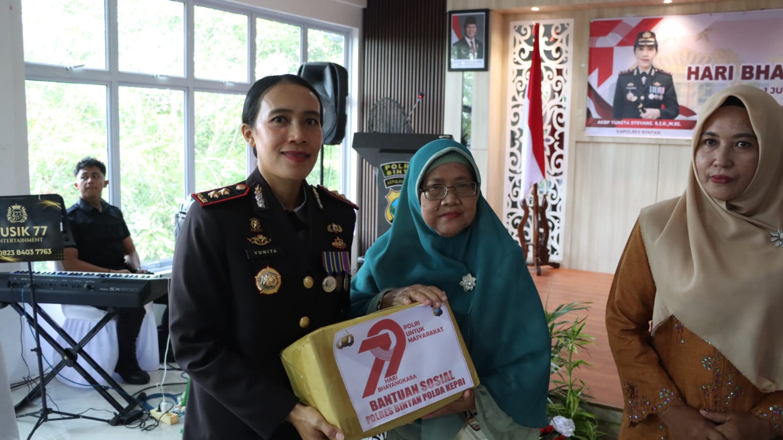 Kegiatan dilanjutkan dengan syukuran bersama di Gedung Aula Sarja Arya Racana (SAR) Mapolres Bintan dengan memberikan bantuan sosial berupa sembako kepada warakauri 20 paket. Diharapkan kepada seluruh personel Polres Bintan dan seluruh elemen masyarakat dapat membantu kinerja dalam pelaksanaan tugas kedepannya.