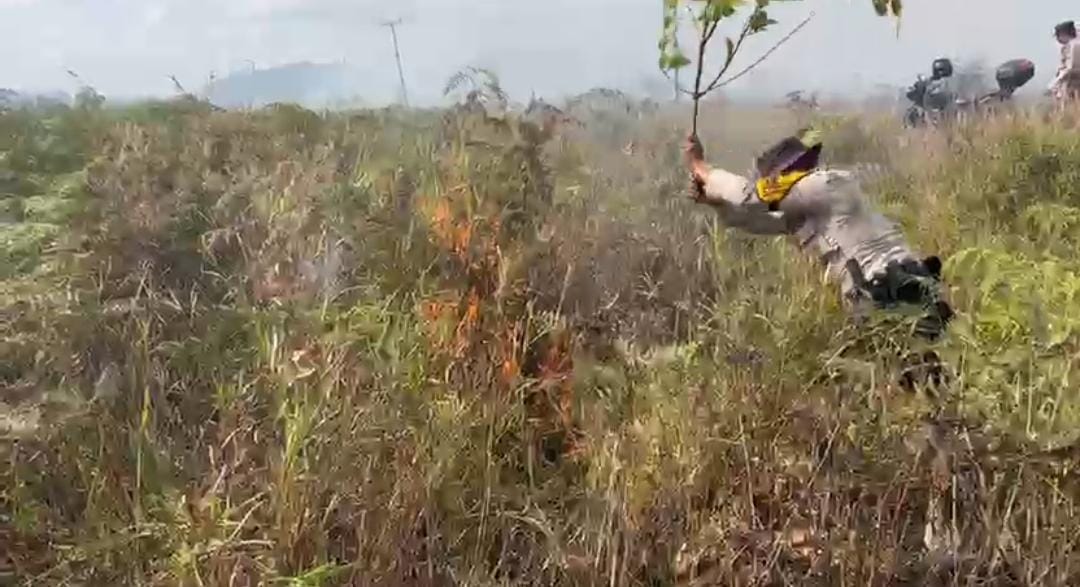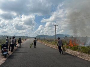 Natuna _ ranaipos.com : Kapolsek Bunguran Barat, Iptu Raja Oloan Purba, dan personelnya berhasil memadamkan kebakaran lahan kosong dan hutan (Karhutla) di Jalan Poros (Batubi-Kelarik) RT.001 RW.001 Desa Gunung Putri, Kecamatan Bunguran Batubi, Kabupaten Natuna, Senin (23/3/2026). Kebakaran yang menghanguskan 50 hektar lahan kosong itu berhasil dipadamkan dengan cara manual oleh tim gabungan.