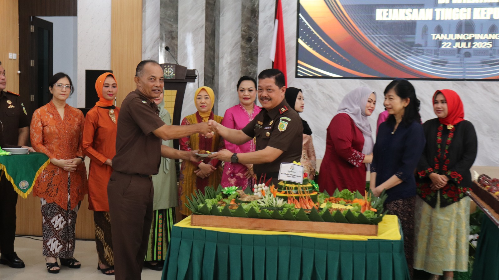 Acara ini dihadiri langsung oleh Kepala Kejaksaan Tinggi Kepulauan Riau J. Devy Sudarso, didampingi Wakajati, para Asisten, Kabag TU, para Koordinator, Kepala Kejaksaan Negeri dan Cabang Kejaksaan Negeri se-Kepri, para Kepala Seksi, seluruh pegawai Kejati Kepri, serta pengurus Ikatan Adhyaksa Dharmakarini (IAD) Wilayah Kepri.