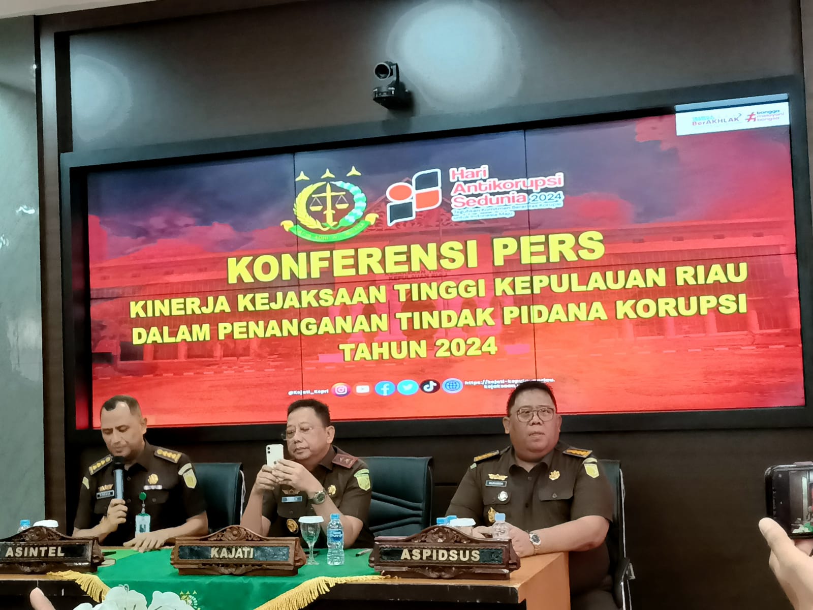 “Kami akan terus konsisten melakukan penindakan hukum terhadap kasus korupsi demi menciptakan tata kelola pemerintahan yang bersih dan transparan,” ujarnya di hadapan 54 jurnalis dari media cetak dan online.