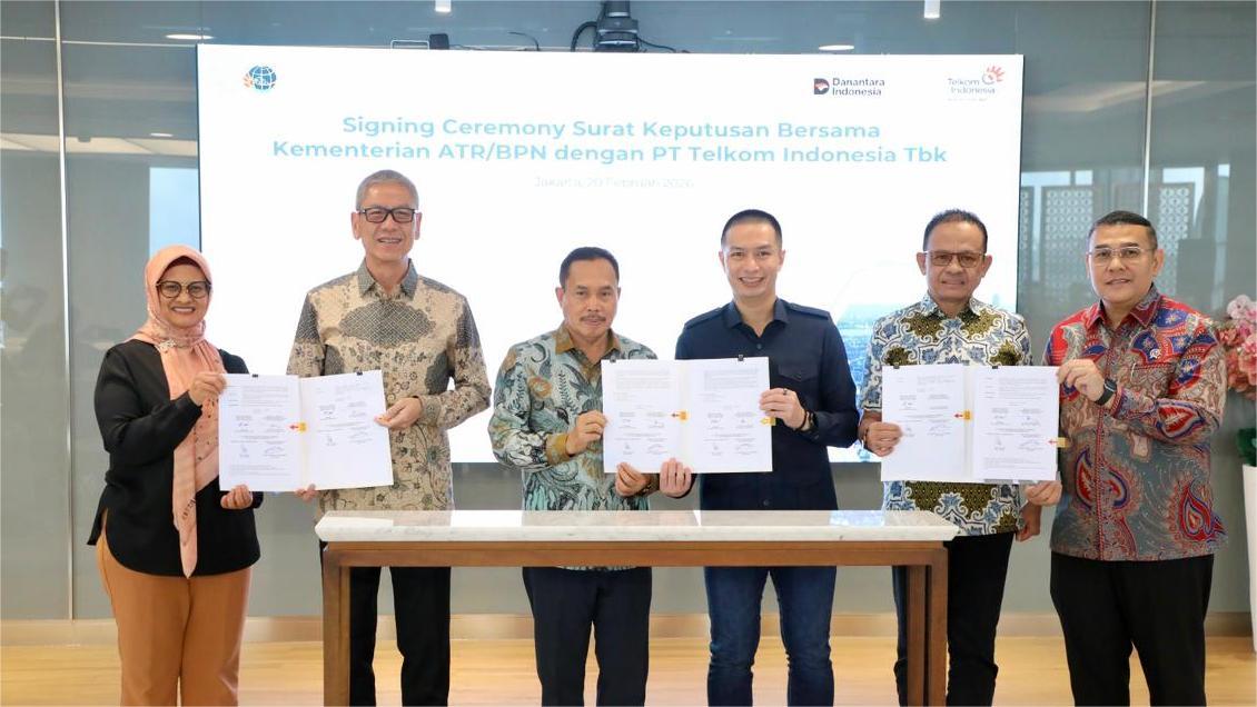 Jakarta _ ranaipos.com : Kementerian Agraria dan Tata Ruang/Badan Pertanahan Nasional (ATR/BPN) bersama PT Telkom Indonesia membentuk Satgas Akselerasi Legalisasi dan Penyelesaian Kasus Aset Tanah Telkom 2026. Pembentukan Satgas disahkan melalui penandatanganan Surat Keputusan Bersama dengan disaksikan oleh Wakil Menteri (Wamen) ATR/Wakil Kepala (Waka) BPN, Ossy Dermawan dan Direktur Utama PT Telkom Indonesia, Dian Siswarini pada Jumat (20/02/2026), di Gedung Telkom Hub, Jakarta.