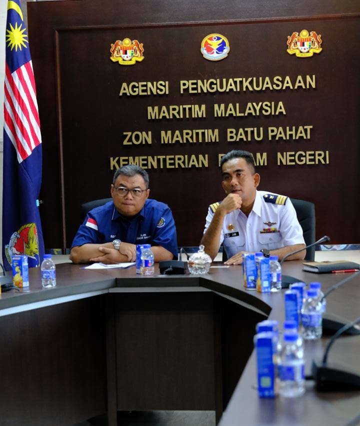 www.ranaipos.com – Malaysia : Konsulat Jenderal Republik Indonesia (KJRI) Johor Bahru melakukan kunjungan kerja ke Agensi Penguatkuasaan Maritim Malaysia (APMM) Zona Maritim Batu Pahat, Johor, Malaysia, untuk memperkuat koordinasi dan kerja sama di bidang pengawasan maritim serta perlindungan Warga Negara Indonesia (WNI) di wilayah perairan Johor.