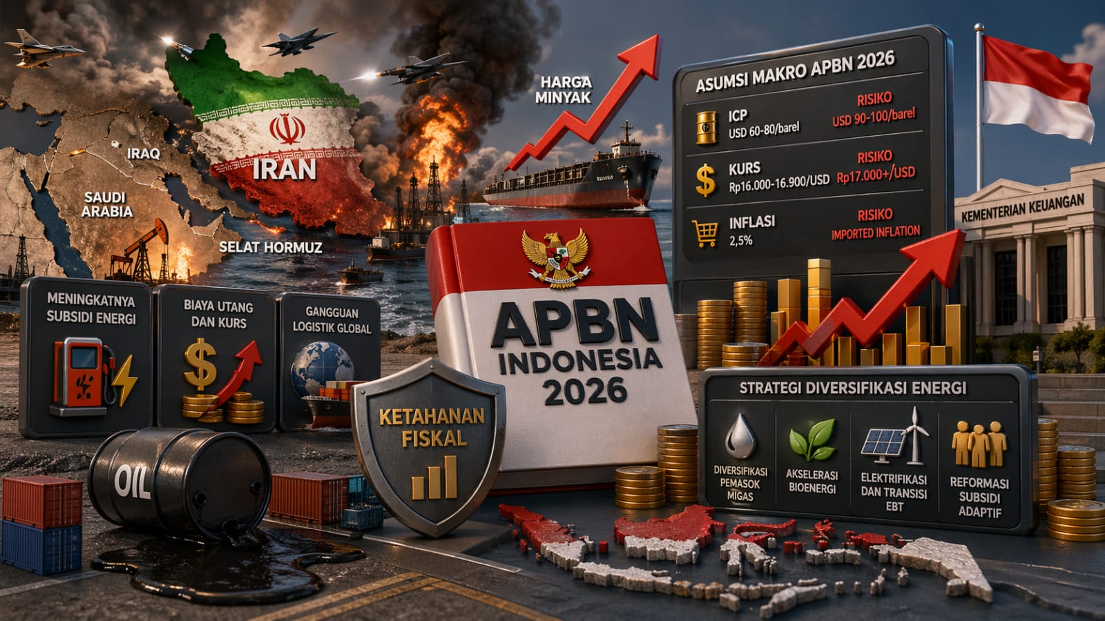 Ketegangan di Timur Tengah, yang melibatkan aktor global bukan sekadar isu geopolitik di media sosial, tetapi menjadi ancaman nyata bagi stabilitas fiskal nasional. Meskipun terbentang jarak yang sangat jauh, tetapi tidak menghalangi dampaknya terhadap Anggaran Pendapatan dan Belanja Negara (APBN) kita. Sehingga konflik ketegangan ini memaksa kita menganalisis dampaknya serta perlu mengkaji ulang angka-angka asumsi makro yang digunakan dalam penyusunan APBN tahun 2026.