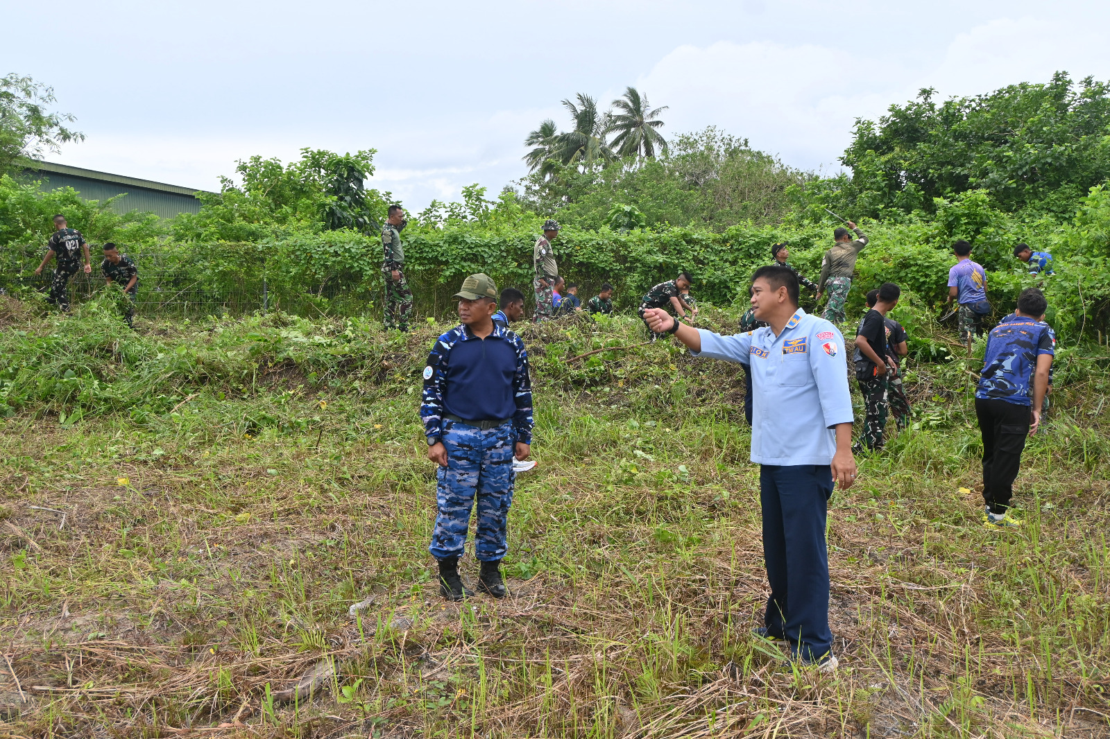 Turut ambil bagian dalam kegiatan ini para Kepala Dinas dan Pejabat Lanud RSA, serta Perwira, Bintara, dan Tamtama yang bahu-membahu membersihkan area dari tanaman liar.