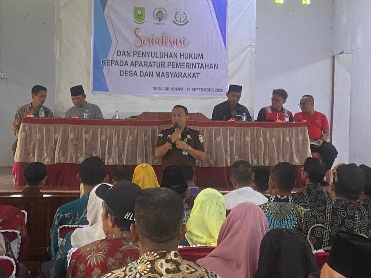 Natuna _ www.ranaipos.com : Suasana berbeda terlihat di Gedung Pertemuan Desa Air Kumpai, Kecamatan Midai, Jumat (19/9/2025). Ratusan warga dari Kecamatan Midai dan Suak Midai memadati ruangan untuk mengikuti kegiatan sosialisasi hukum yang digelar Kejaksaan Negeri (Kejari) Natuna, berkolaborasi dengan PLN dan Basarnas Natuna.