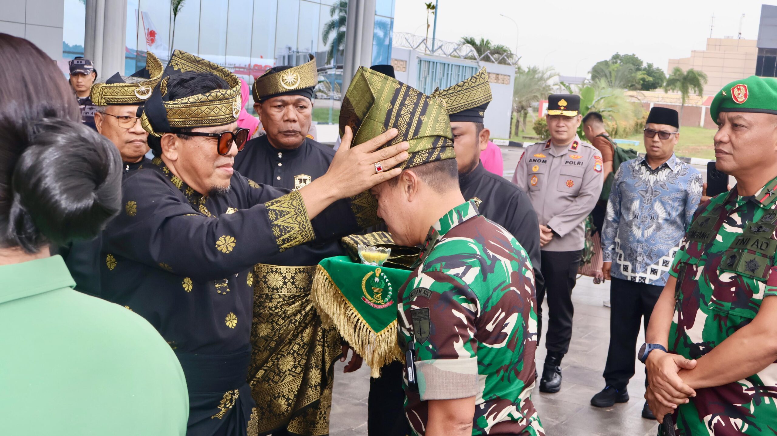 Setibanya di Bandara Hang Nadim Batam, Pangdam XIX/TT disambut dengan prosesi adat berupa pemasangan tanjak dan selendang serta tepung tawar oleh Lembaga Adat Melayu (LAM) Kepri Kota Batam. Rombongan kemudian mengadakan ramah tamah di ruang transit VIP Bandara Hang Nadim, sekaligus merayakan Hari Ulang Tahun ke-73 Hari Kesatuan Gerak Bhayangkari bersama Wakapolda dan istri.