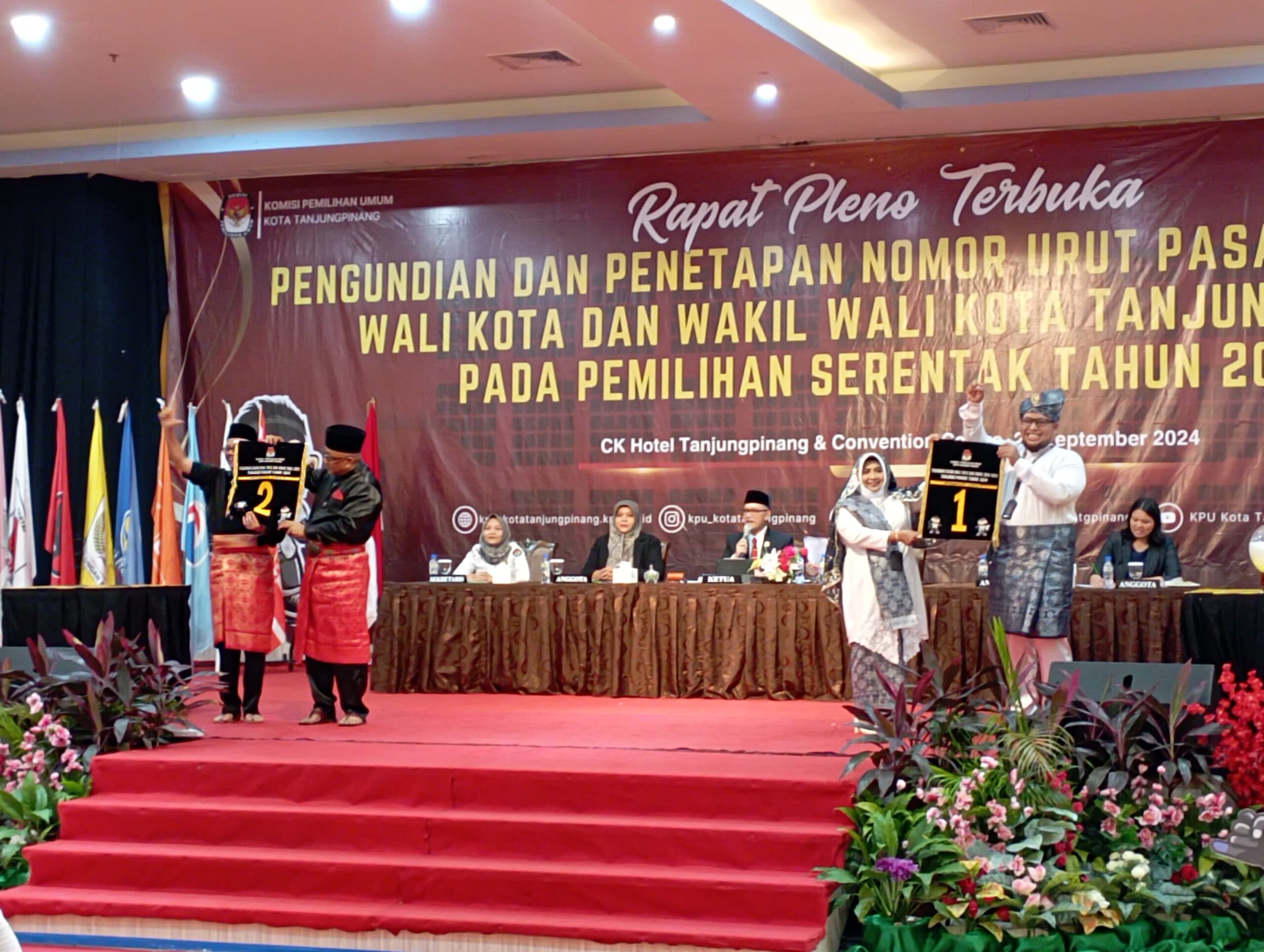www.ranaipos.com – Tanjungpinang : Pasangan calon Walikota dan Wakil Walikota Tanjungpinang, Hj. Rahma, S.IP, MM dan Rizha Hafiz, S.Pd.I, M.Pd, secara resmi mendapatkan nomor urut 1 dalam pencabutan nomor urut peserta Pilkada 2024 yang diselenggarakan oleh KPU Tanjungpinang. Nomor urut 1 ini menjadi simbol awal bagi pasangan Rahma-Rizha Hafiz dalam melanjutkan perjuangan mereka untuk masa depan Tanjungpinang yang lebih maju dan sejahtera.