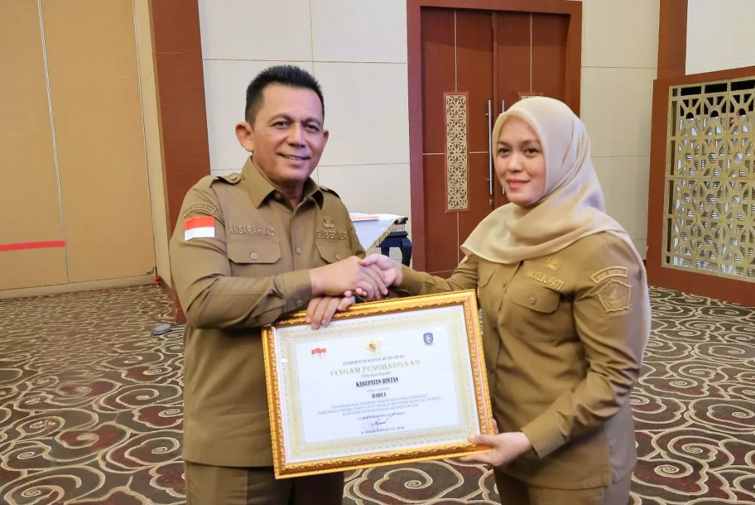 Penghargaan tersebut diterima langsung oleh Wakil Bupati Bintan, Deby Maryanti, Senin (03/11) di Aula Wan Seri Beni, Kantor Gubernur Kepulauan Riau.