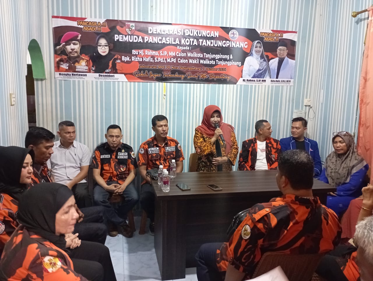 Dalam sambutannya, calon walikota Tanjungpinang, Hj. Rahma, mengungkapkan rasa terima kasihnya atas dukungan yang diberikan oleh Pemuda Pancasila. Ia menyatakan bahwa dukungan tersebut merupakan dorongan semangat untuk terus memperjuangkan kota Tanjungpinang, khususnya dalam mengedepankan pemerintahan yang bersih dari korupsi.