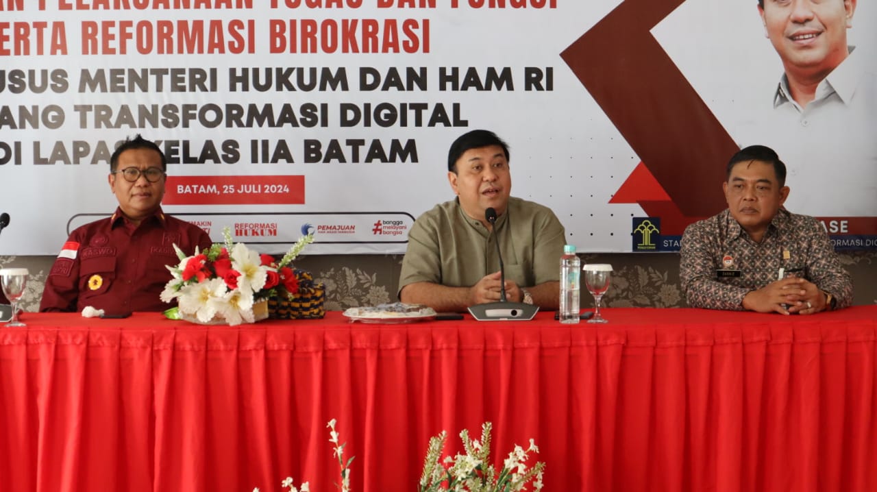 www.ranaipos.com – Batam : Dalam rangkaian kunjungan kerjanya di Kantor Wilayah Kementerian Hukum dan HAM Kepulauan Riau, Staff Khusus Menteri Hukum dan HAM Bidang Transformasi Digital, Fajar B.S. Lase, mengunjungi Lembaga Pemasyarakatan (Lapas) Kelas IIA Batam dan Rumah Tahanan Negara (Rutan) Kelas IIA Batam, Kamis (25/07/2024).