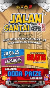 Anambas – ranaipos.com : Dalam rangka memperingati Hari Ulang Tahun (HUT) Bhayangkara ke-79 yang mengusung tema “Polri untuk Masyarakat”, Polres Kepulauan Anambas akan menggelar kegiatan Jalan Santai pada hari Sabtu, 28 Juni 2025, yang dipusatkan di Lapangan Sepak Bola Sulaiman Abdullah, Tarampa.