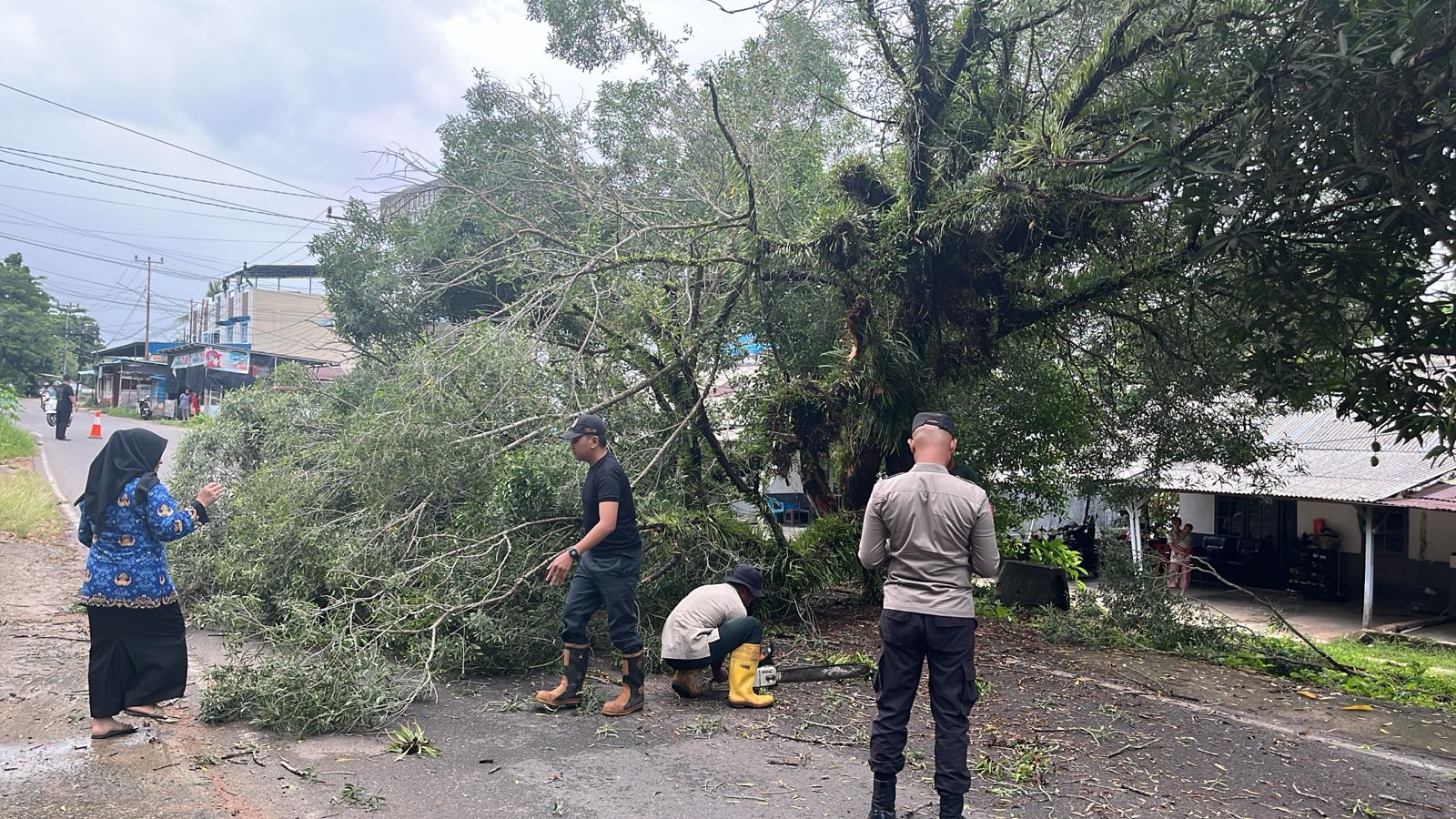 Sementara proses evakuasi pohon tumbang dibantu pihak kepolisian untuk melakukan rekayasa lalu lintas agar tidak terjadi kemacetan dan tidak menimbulkan korban jiwa. Korlap TRC BPBD Tanjungpinang, Jarot Endartno, menjelaskan bahwa pihaknya mendapatkan informasi adanya pohon tumbang dari Lurah Sei Jang pukul 13:15 WIB.