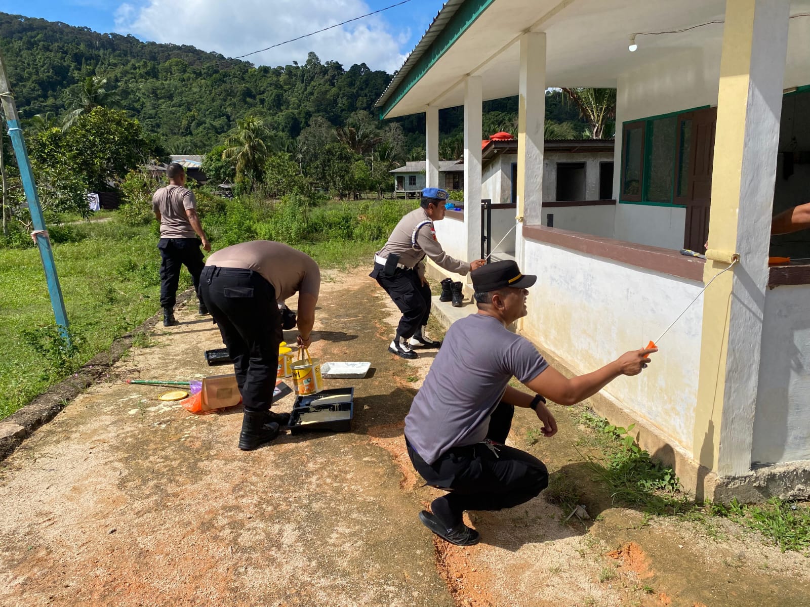 Selain memperindah tampilan Surau Husnul Khatimah, kegiatan GEBER ini juga menjadi momen silaturahmi antara Polri, tokoh agama, dan warga desa.