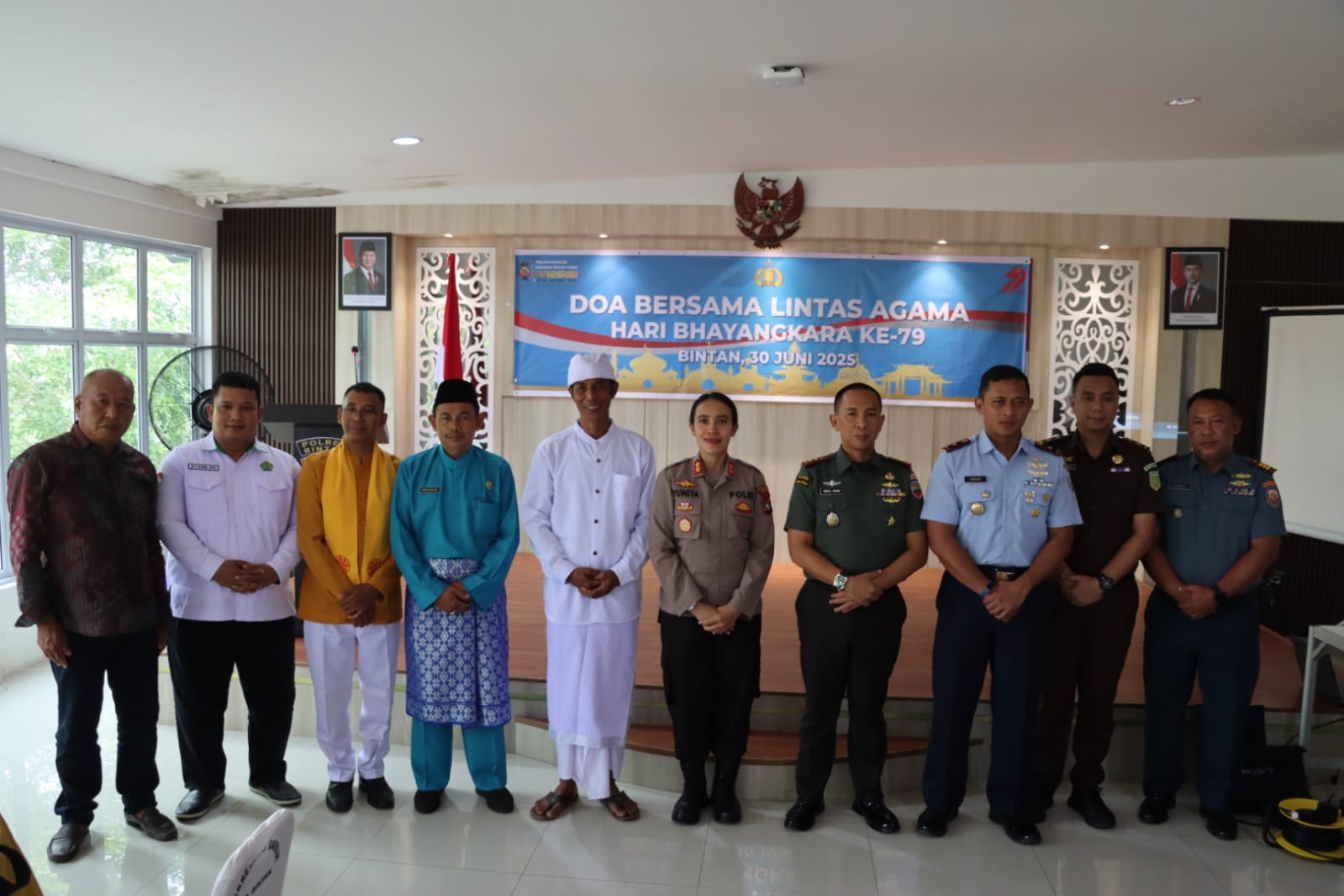 www.ranaipos.com – Bintan : Polres Bintan menggelar Do’a Lintas Agama yang dilaksanakan di Gedung Sarja Arya Racana (SAR) pada Hari Senin (30/6/25). Kegiatan ini di pimpin oleh Kapolres Bintan AKBP Yunita Stevani, S.I.K., (tautan tidak tersedia) dan di dampingi para pejabat utama Polres Bintan, serta dihadiri oleh unsur Forum Koordinasi Pimpinan Daerah (Forkopimda), anggota TNI-Polri, serta perwakilan dari berbagai instansi terkait dan para Tokoh Agama.