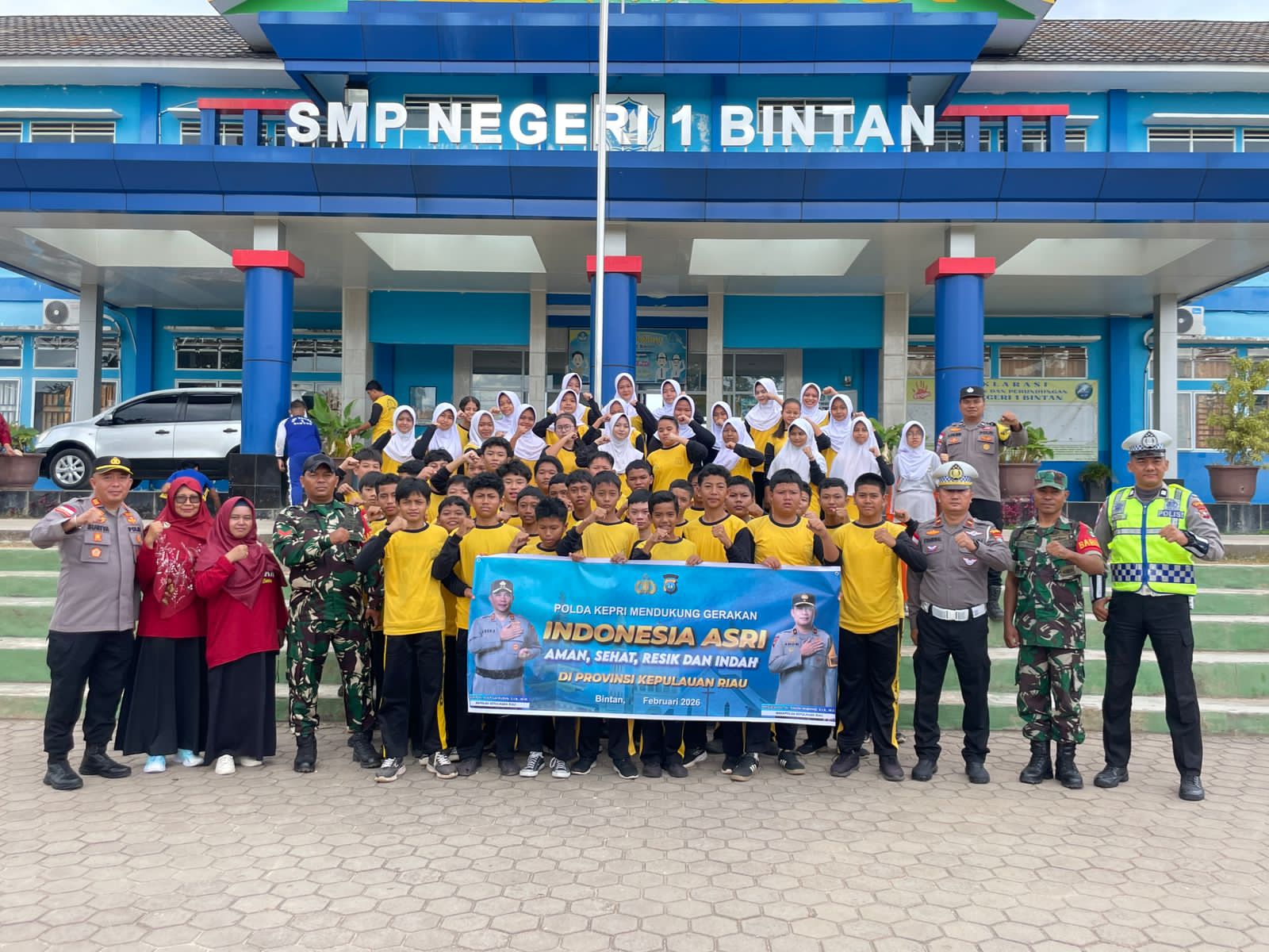 www.ranaipos.com – Bintan : Polres Bintan menggelar kerja bakti bersama masyarakat dalam rangka mendukung Gerakan Indonesia ASRI (Aman, Sehat, Resik, dan Indah), sebuah program nasional yang bertujuan menciptakan lingkungan bersih, sehat, dan tertata. Kegiatan ini dilaksanakan di sejumlah titik di wilayah Kabupaten Bintan, Kamis (12/2/2026).
