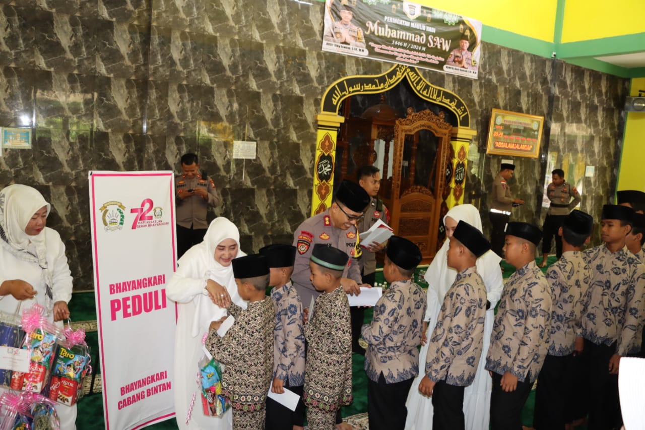 Acara tersebut dihadiri oleh Kapolres Bintan AKBP Riky Iswoyo, S.I.K., M.M., didampingi Wakapolres Bintan Kompol Amir Hamzah, S.H., M.H., para pejabat utama Polres Bintan, Kapolsek Jajaran, Ketua Bhayangkari Cabang Bintan beserta pengurus, serta personil Polres Bintan. Selain itu, turut hadir adik-adik Panti Asuhan Bina Insani KM. 18 Kijang untuk memeriahkan acara tersebut.