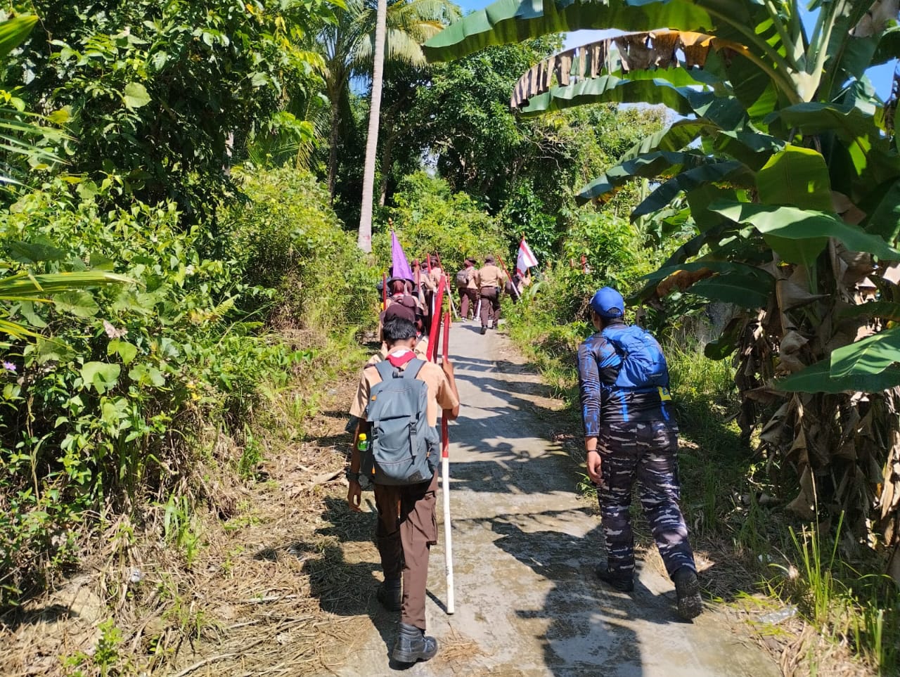 www.ranaipos.com – Anambas : Personel Pos TNI Angkatan Laut (Posal) Memperuk, jajaran Lanal Tarempa, turut ambil bagian dalam kegiatan Napak Tilas Ambalan Sajati yang diselenggarakan Pramuka SMA Negeri 1 Siantan Timur. Dengan penuh semangat, para prajurit mendampingi peserta menyusuri medan berat naik dan turun bukit di Pulau Bajau, Desa Nyamuk, Kecamatan Siantan Timur, Kabupaten Kepulauan Anambas, Minggu (02/11/2025).