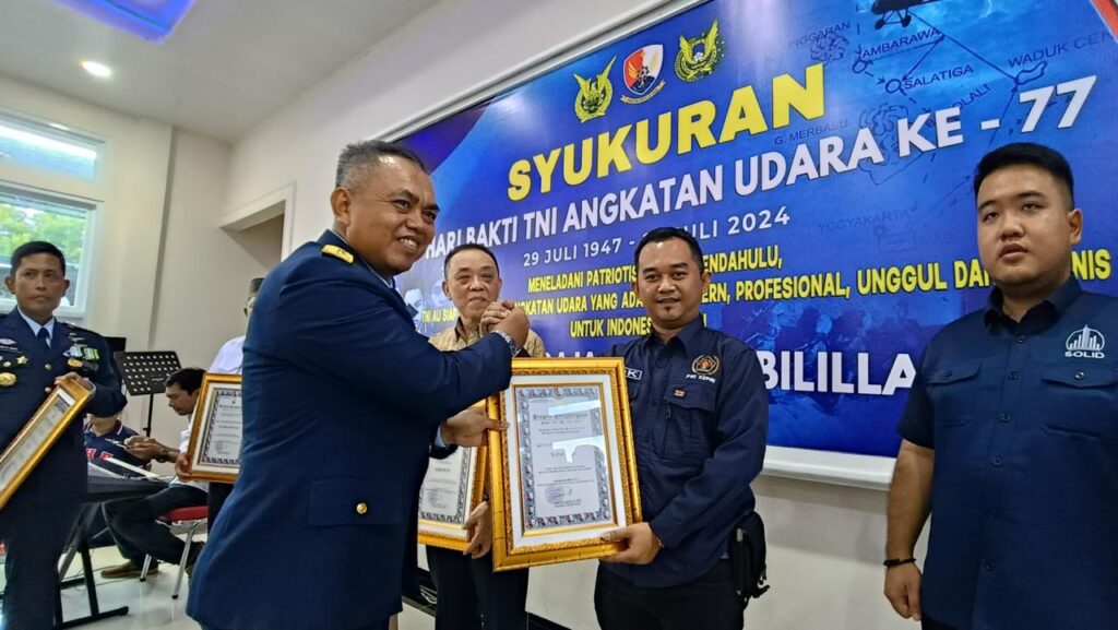 www.ranaipos.com – Tanjungpinang : Ketua Persatuan Wartawan Indonesia (PWI) Kepulauan Riau, Andi, menerima penghargaan dari Komandan Lanud Raja Haji Fisabilillah (RHF) Kota Tanjungpinang pada acara syukuran peringatan ke-77 Hari Bakti TNI Angkatan Udara tahun 2024, Senin (29/07/2024).