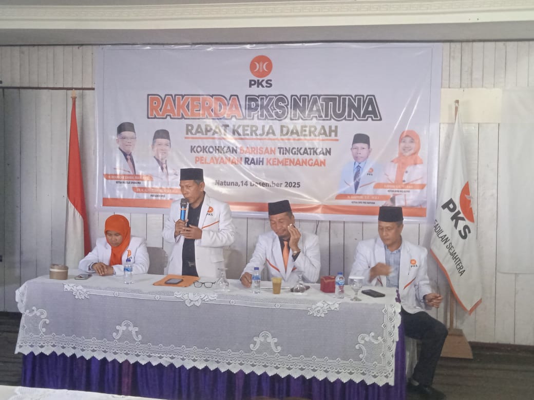Natuna — ranaipos.com : Dewan Pimpinan Daerah (DPD) Partai Keadilan Sejahtera (PKS) Kabupaten Natuna menggelar Rapat Kerja Daerah (Rakerda) dengan mengusung tema “Kokohkan Barisan, Tingkatkan Pelayanan, dan Raihkan Kemenangan.” Kegiatan ini menjadi forum strategis dalam merumuskan arah kebijakan dan program kerja partai ke depan, khususnya dalam penguatan kader, kaderisasi, serta pelayanan publik yang berkelanjutan, Minggu (14/12/25) di RM Sisi Basisir.