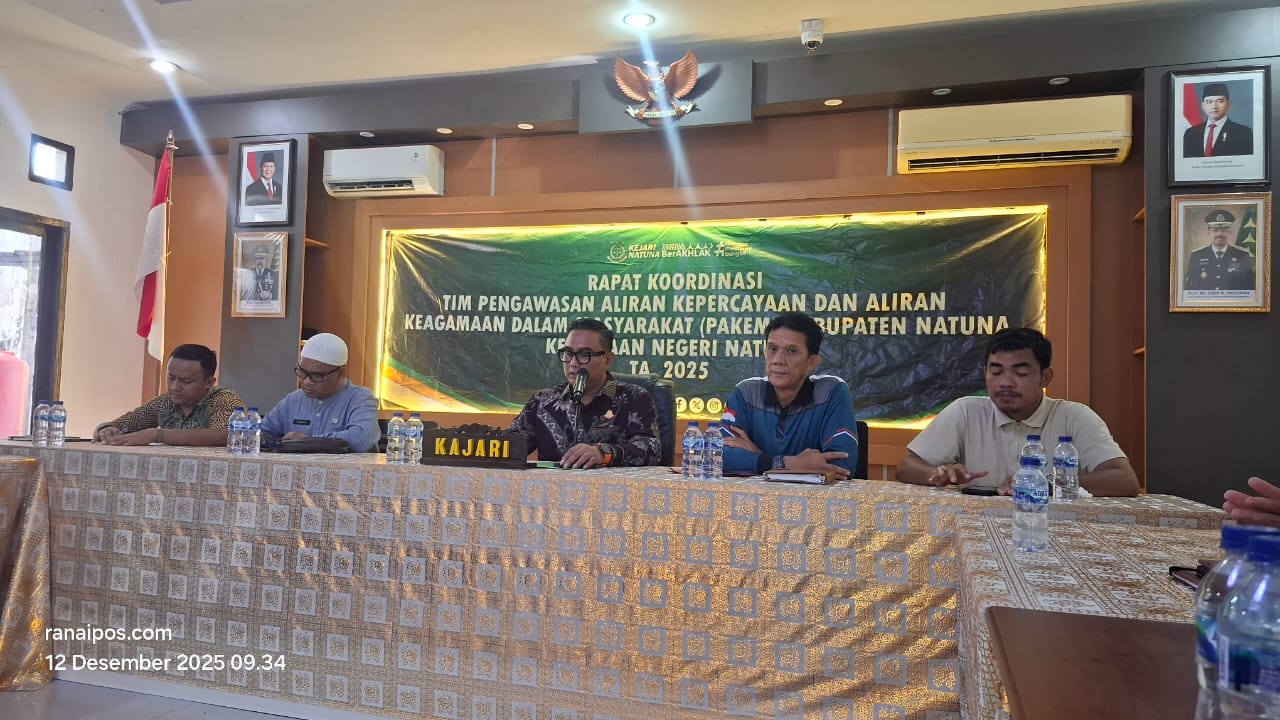 Natuna _ ranaipos.com : Rapat Koordinasi Pengawasan Aliran Kepercayaan dan Aliran Keagamaan dalam Masyarakat (PAKEM) Kabupaten Natuna kembali dilaksanakan di Kantor Kejaksaan Negeri Natuna, Jumat, 12 Desember 2025.