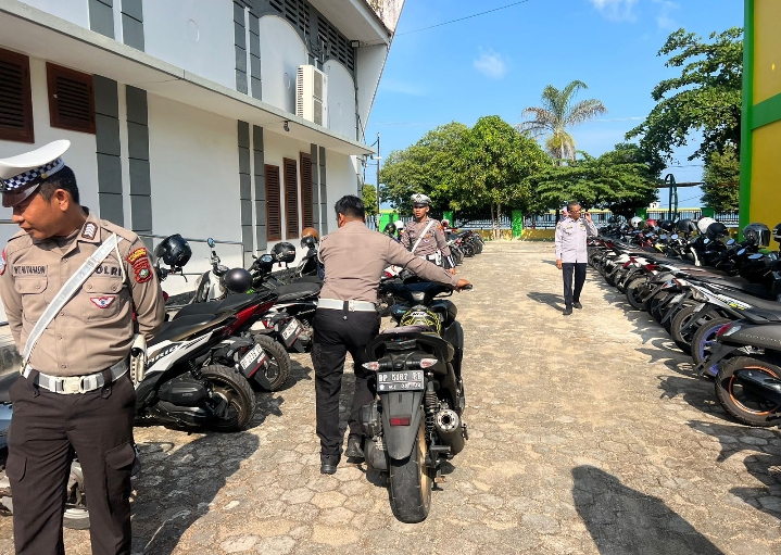 www.ranaipos.com-Tanjungpinang : Sat Lantas Polresta Tanjungpinang dan Dsihub Tanjungpinang melakukan tindakan razia knalpot brong di sekolah SMAN 5 Tanjungpinang, Rabu (4/6/2025).