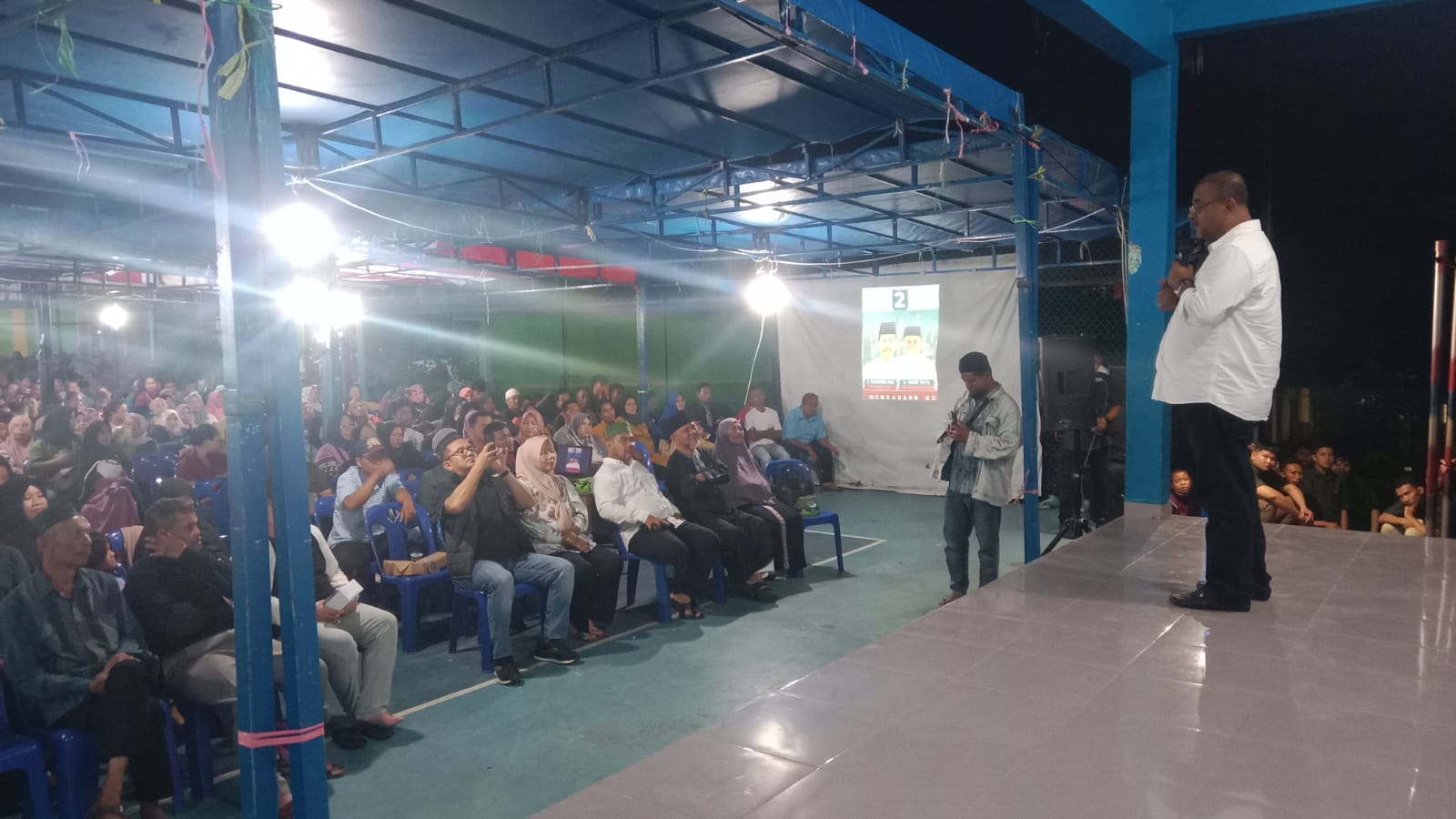 Pantauan media ini di lapangan, kendatipun suasana malam,  namun warga tetap bersemangat menunggu kehadiran paslon gubernur no urut 2 tersebut sejak usai  Sholat Isya.  Calon Wakil Gubernur H. Aunur Rafiq yang berkesempatan hadir menyapa warga pada agenda itu.