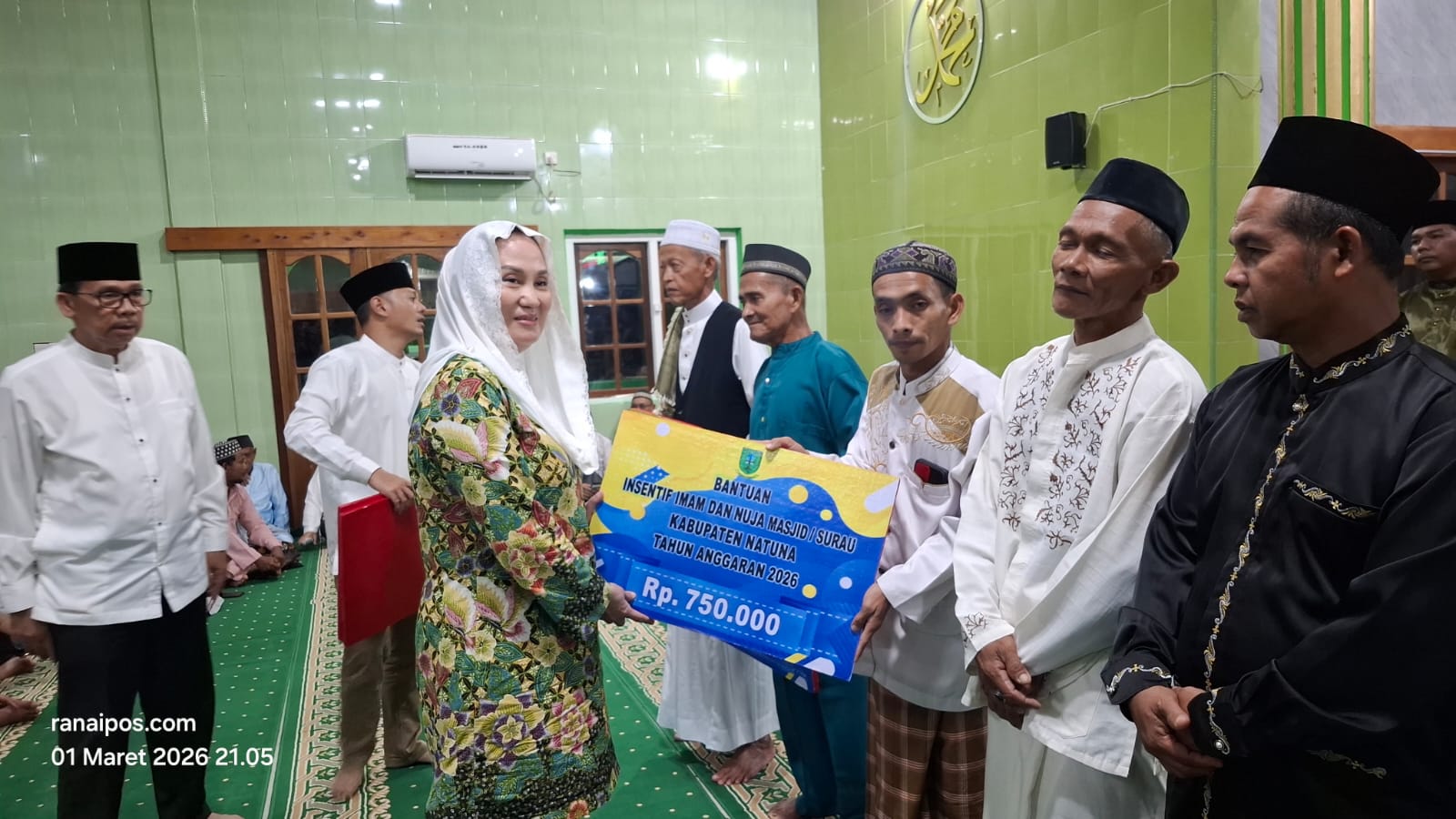 Pulau Tiga Barat _ ranaipos.com : Bupati Natuna, Cen Sui Lan melaksanakan kunjungan Safari Ramadan di Masjid Al Hikmah, Kecamatan Pulau Tiga Barat, Minggu (01/03/26) malam. Kegiatan tersebut berlangsung khidmat dan penuh keakraban bersama masyarakat setempat.