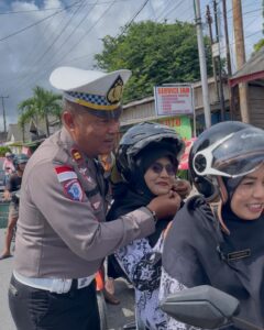 Satlantas Polres Natuna Bagikan Helm dan Brosur Keselamatan pada Ops Zebra Seligi 2025