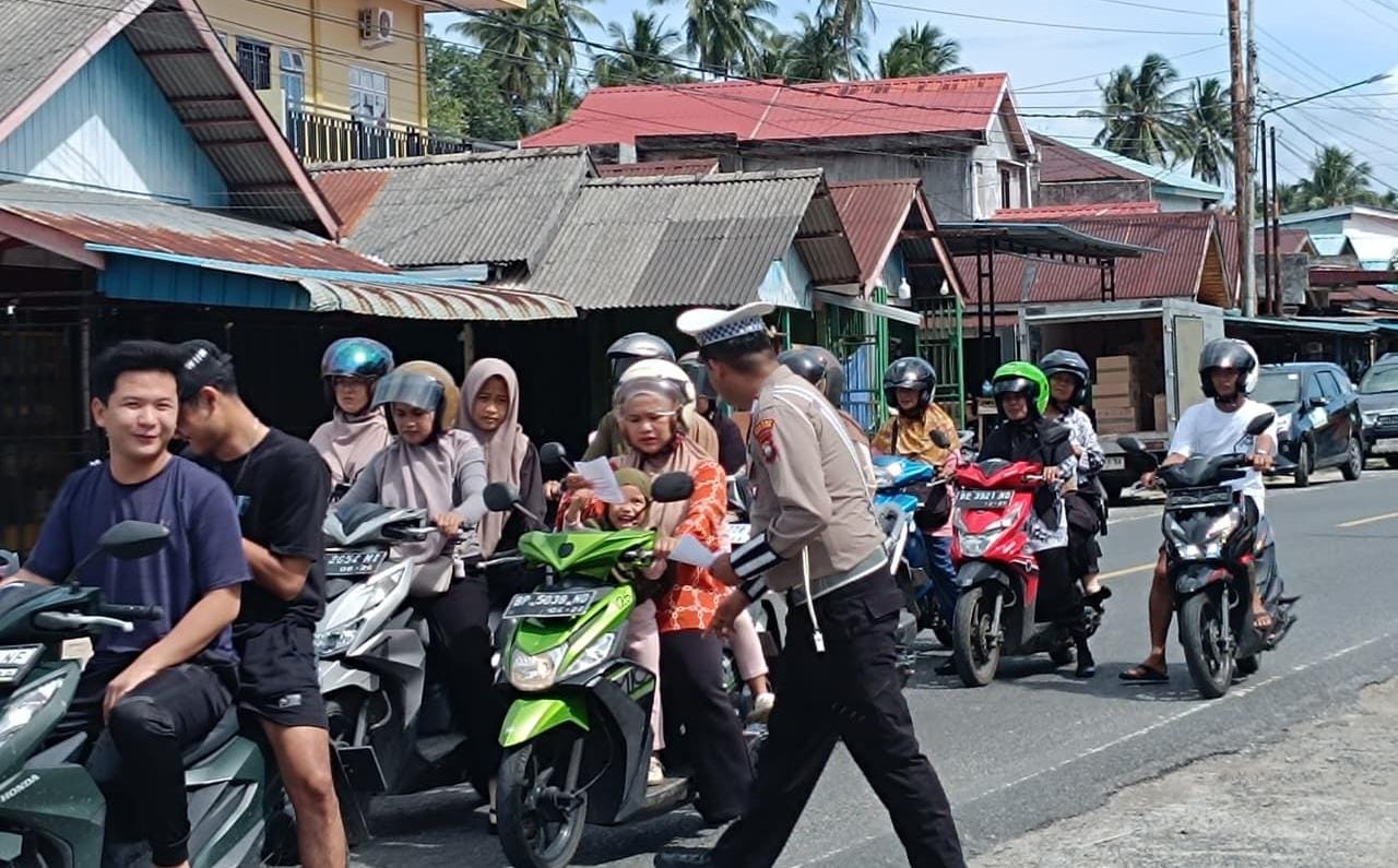 Pembagian brosur imbauan keselamatan turut dilakukan untuk meningkatkan kesadaran masyarakat tentang pentingnya kepatuhan terhadap aturan lalu lintas, kelengkapan surat kendaraan, SIM, serta kewajiban membayar pajak demi mengurangi potensi kecelakaan dan fatalitas di jalan raya.