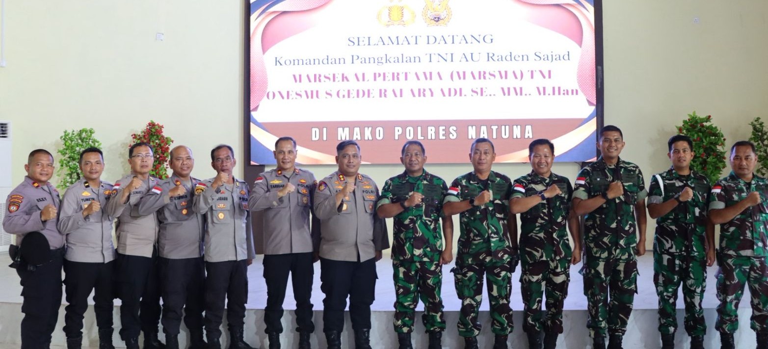 www.ranaipos.com _Natuna : Dalam semangat mempererat sinergitas TNI–Polri di wilayah perbatasan ujung utara Indonesia, Komandan Pangkalan TNI Angkatan Udara (Lanud) Raden Sadjad, Marsekal Pertama (Marsma) TNI Onesmus Gede Rai Aryadi, S.E., M.M., M.Han, melaksanakan kunjungan silaturahmi ke Mapolres Natuna, Selasa (14/10).