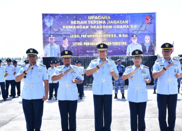 Natuna _ ranaipos.com : Komandan Lanud Raden Sadjad (Lanud RSA) Marsekal Pertama TNI Onesmus Gede Rai Aryadi, S.E., M.M., M.Han., menghadiri serah terima jabatan Komandan Skadron Udara 52, bertempat di Main Apron Skadron Udara 52, Kabupaten Natuna, Provinsi Kepulauan Riau, Rabu (25/3).