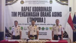 Natuna — ranaipos.com : Kantor Imigrasi Kelas II TPI Ranai menggelar Rapat Koordinasi Tim Pengawasan Orang Asing (TIMPORA) tingkat Kabupaten Natuna Tahun 2026, Kamis (23/4), di Ballroom Adiwana Jelita Sejuba.