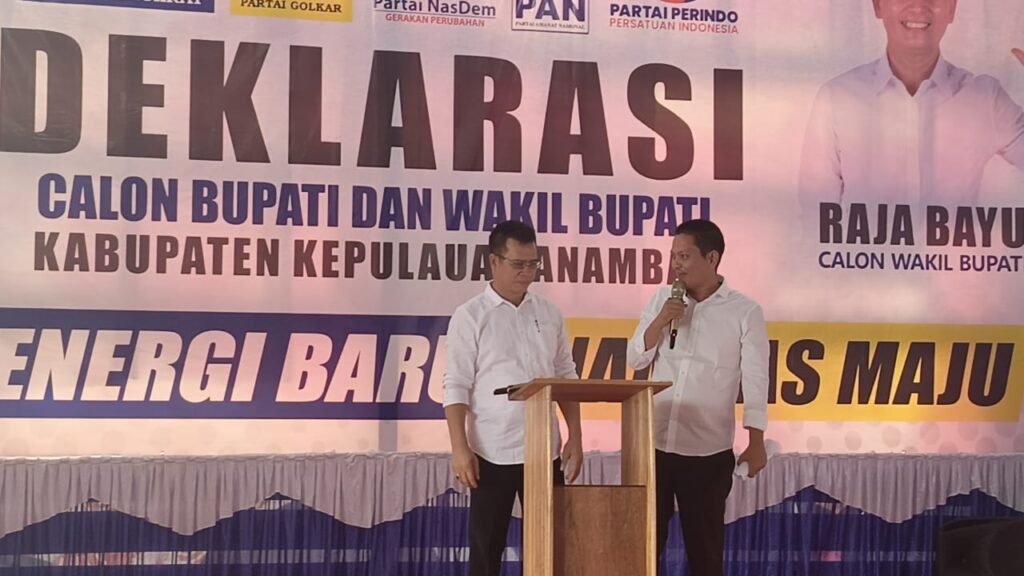 www.ranaipos.com – Anambas : Dalam Pesta Demokrasi Pemilihan Umum Kepala Daerah (Pemilukada) Tahun 2024 yang akan diselenggarakan pada Tanggal 27 November mendatang, pasangan Calon (Paslon) Aneng dan Raja Bayu Febri Gunadian resmi deklarasikan ikut serta sebagai Calon Bupati dan Wakil Bupati Kepulauan Anambas.